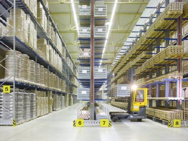 移动式货架易控制,安全稳定。每排货架有一个电机驱动,由装置于货架下的滚轮沿铺设于地面上的轨道移动。