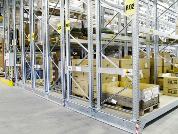 移动式货架易控制,安全稳定。每排货架有一个电机驱动,由装置于货架下的滚轮沿铺设于地面上的轨道移动。
